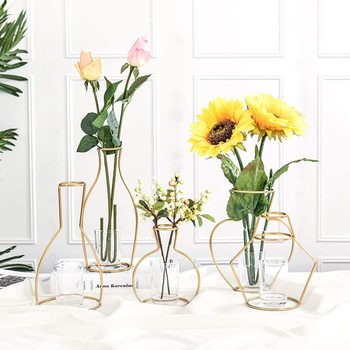 Vasi nordici per fioriera geometrica in vetro scaffalature Retro linea di ferro vasi da fiori porta piante in metallo decorazioni per la casa moderne