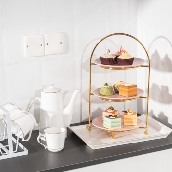 3 שכבות עוגת Stand, תה מסיבת להגשת מגש, קינוח ו Cupcake Stand, מתכת שכבות עמדה המשרתת עם שלושה פרימיום צלחות